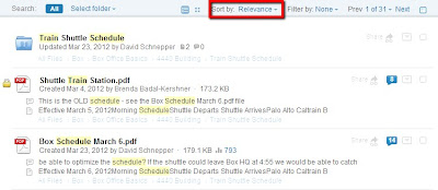 When you have full text search, you can search within content and documents to find the right information. In the query below, I searched for“company train schedule”, and was directed based on relevance and full-text to the folders and files that I was looking for.